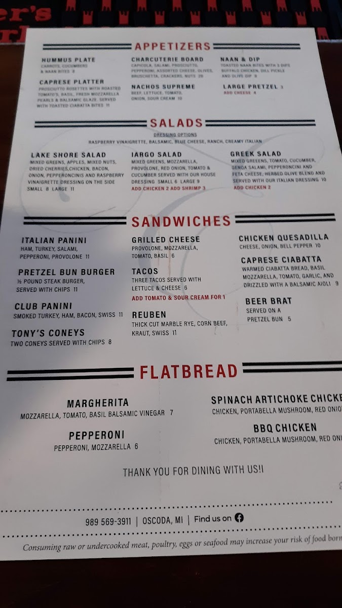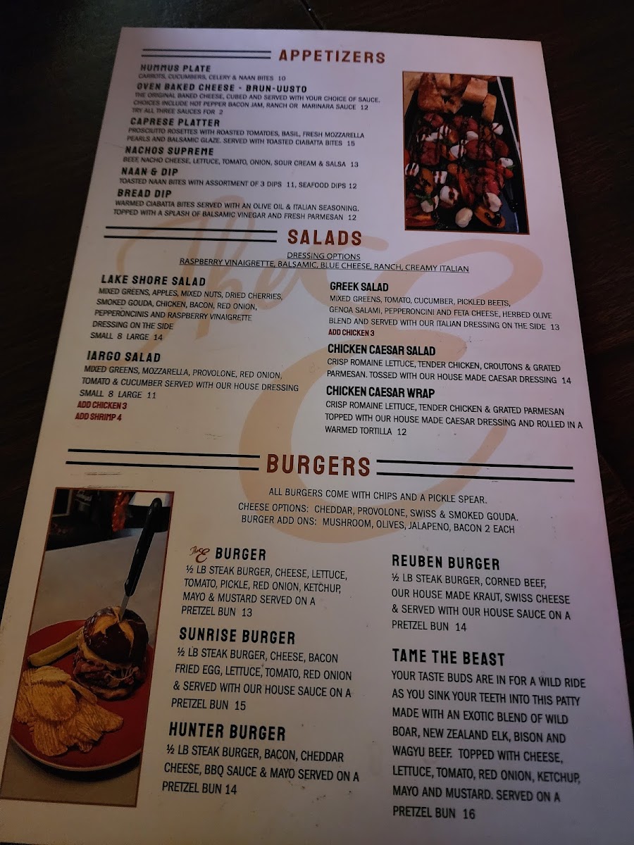 - Options range from hearty burgers and wood-fired flatbreads to fresh salads and light snacks