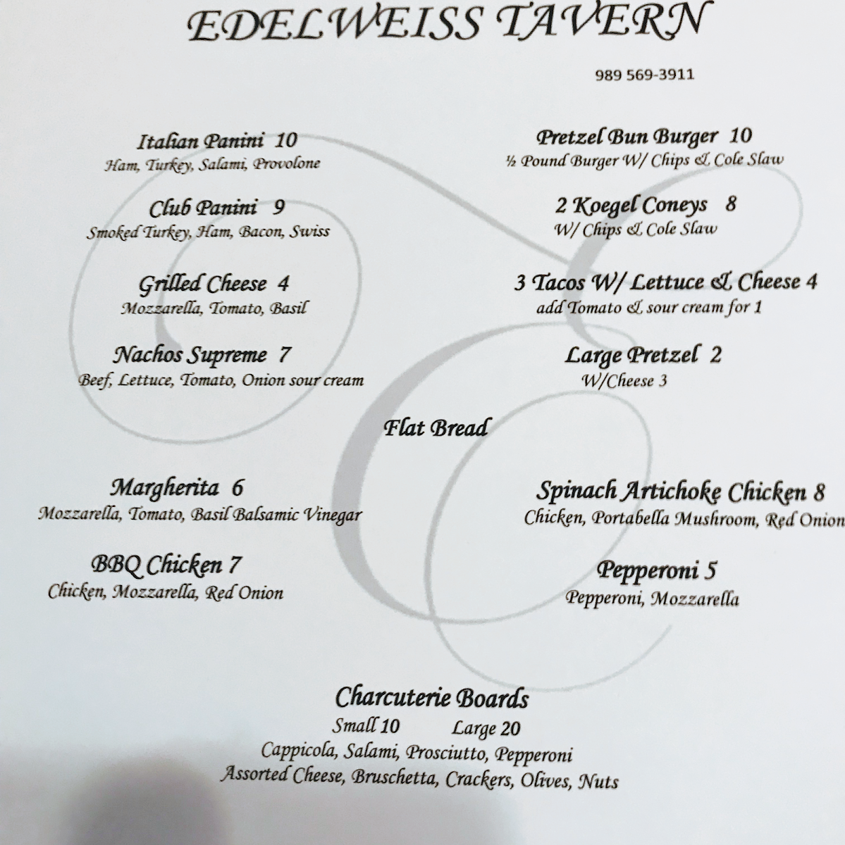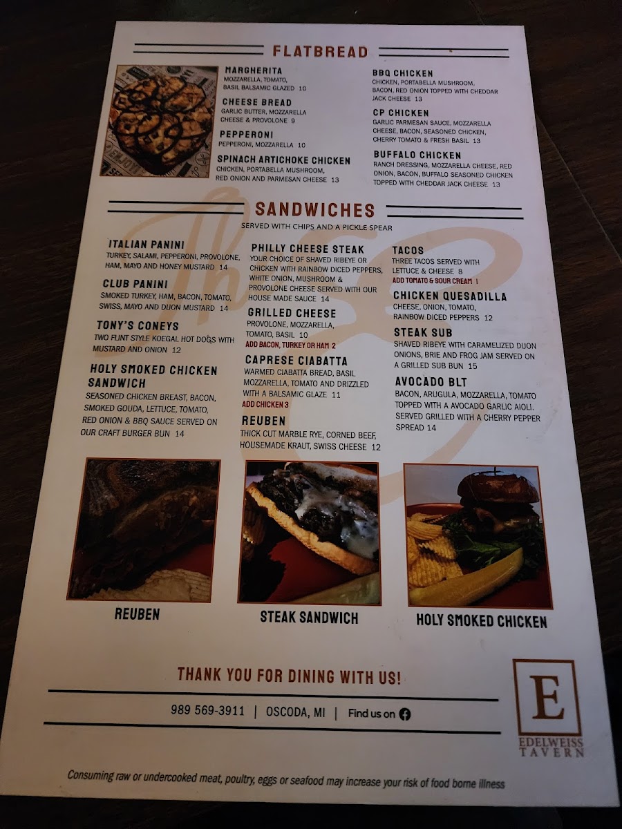 Edelweiss Tavern Menu